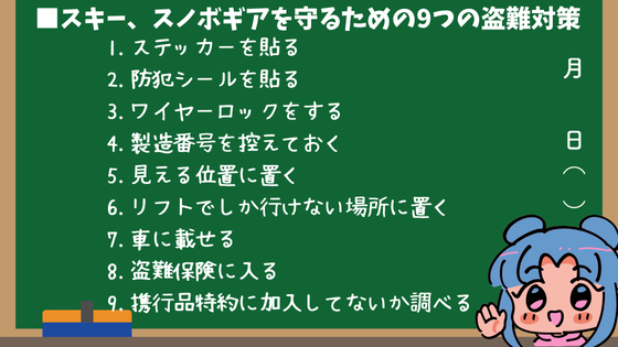 今回はスキー、スノーボード板を守るための、9つの盗難防止対策についてお話したいと思います。